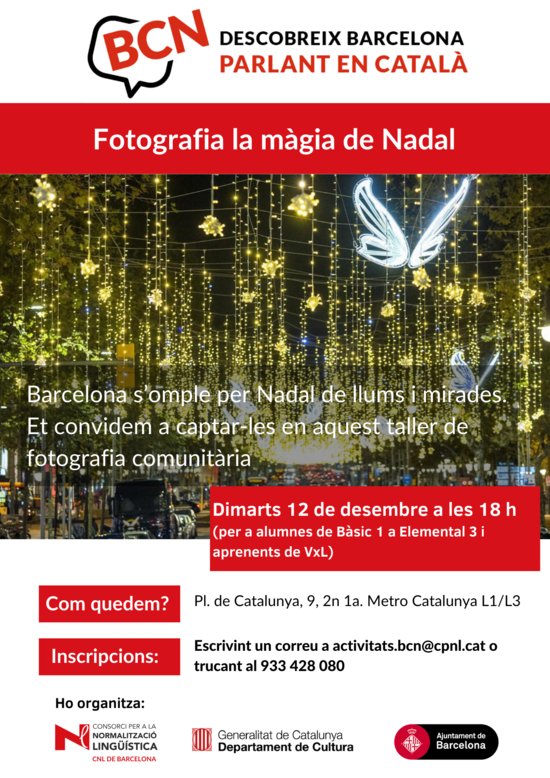 Barcelona s'omple per Nadal de llums i mirades. Et convidem a captar-les en aquest taller de fotografia comunitària.