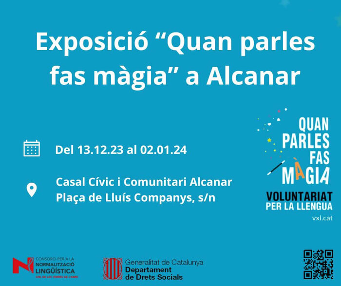 Del 13 de desembre de 2023 al 2 de gener de 2024, al Casal Cívic i Comunitari Alcanar, hi haurà instal·lada l'exposició "Quan parles fas màgia".