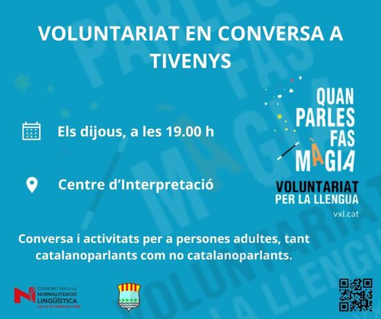 Voluntariat en conversa a Tivenys. L’activitat es realitzarà els dijous laborables, a les 19.00 h, al Centre d’Interpretació de la població.
