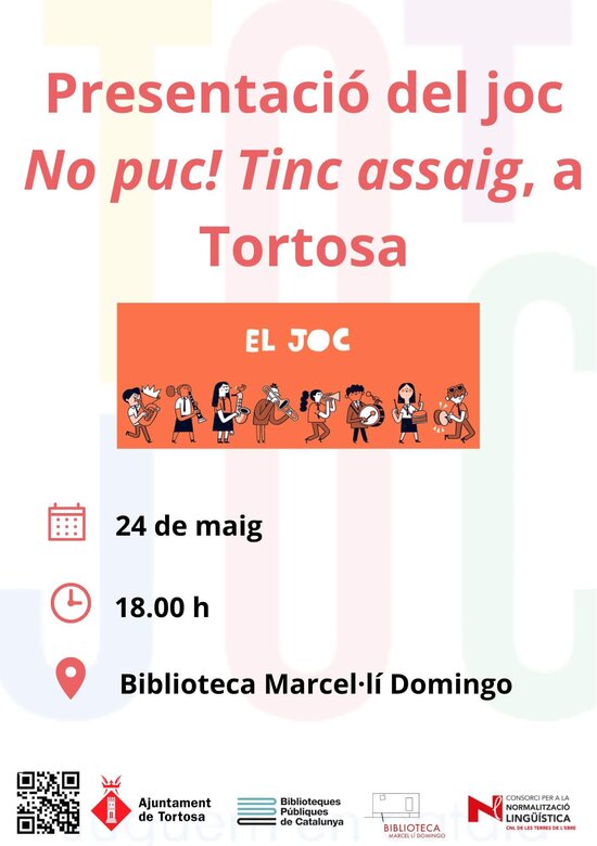 El divendres 24 de maig, a les 18.00 h, a la Biblioteca Marcel·lí Domingo de Tortosa, es presenta el joc de taula No puc! Tinc assaig de Joan Marc Clofent. Anirà a càrrec de l’autor.
