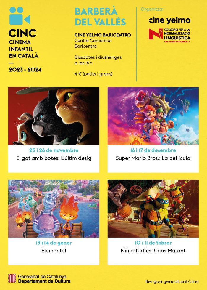 El cap de setmana del 10 i 11 de febrer, es podrà veure en català a Yelmo Cines de Barberà del Vallès Ninja Turtles: Caos Mutant, la darrera pel·lícula del Cicle de Cinema Infantil en Català (CINC).