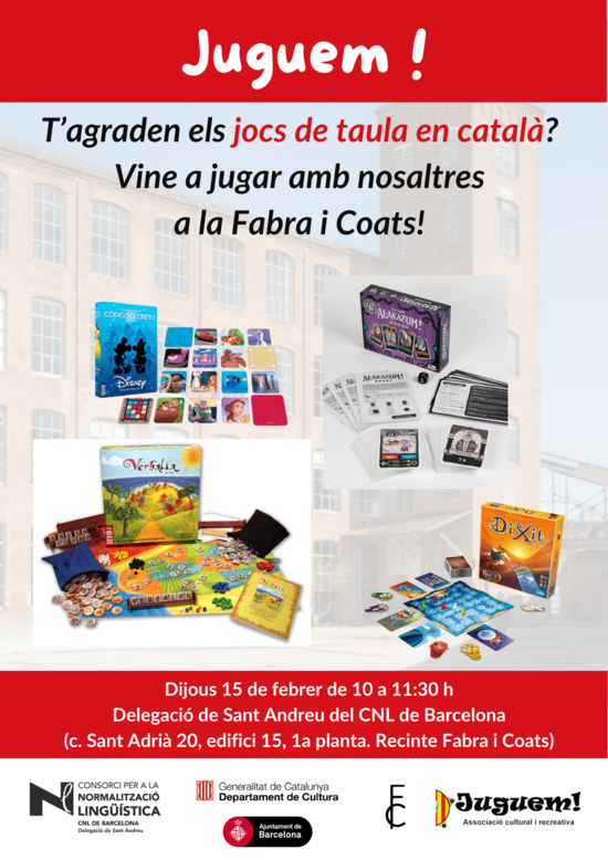 T'agraden els jocs de taula en català? Vine a jugar amb nosaltres a la Fabra i Coats!