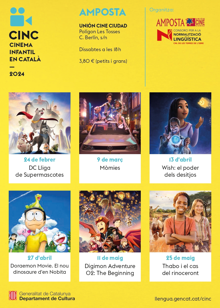 A partir del 24 de febrer es projectaran sis pel·lícules infantils, doblades al català, a les sales del cinema d’Amposta: