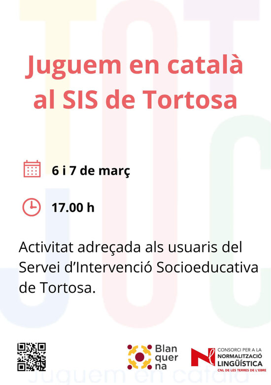 Els dies 6 i 7 de març, a les 17.00 h, hi haurà sessions de jocs en català adreçades als usuaris del Servei d'Intervenció Socioeducativa de Tortosa.