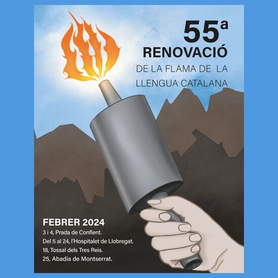 Cloenda dels actes de celebració de la 55a renovació de la Flama de la Llengua Catalana al Monestir de Montserrat. Col·loqui sobre la llengua catalana i l'experiència d'aprendre català amb alumnes i aprenents de VxL.