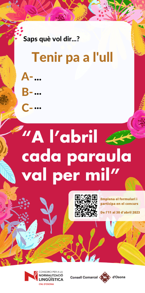 Trobareu tota la informació i la butlleta per participar en el concurs al blog "A l'abril, cada paraula val per mil"