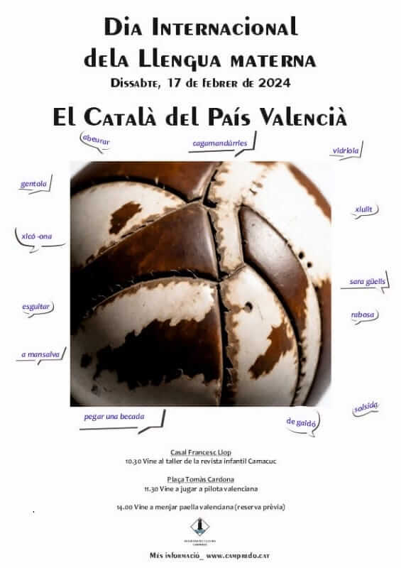 Amb motiu del Dia Internacional de la Llengua Materna, dissabte 17 de febrer, hi ha programades diverses activitats a Campredó relacionades amb el català del País Valencià.