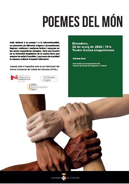 Acte dedicat a la poesia i a la interculturalitat, en el qual persones de diferents orígens i procedències llegiran, recitaran i cantaran textos i cançons en les seves llengües. Serà una mostra de la diversitat lingüística de la nostra terra que sempre ha estat d'acollida, i que posa de manifest la riquesa cultural d'aquest intercanvi.