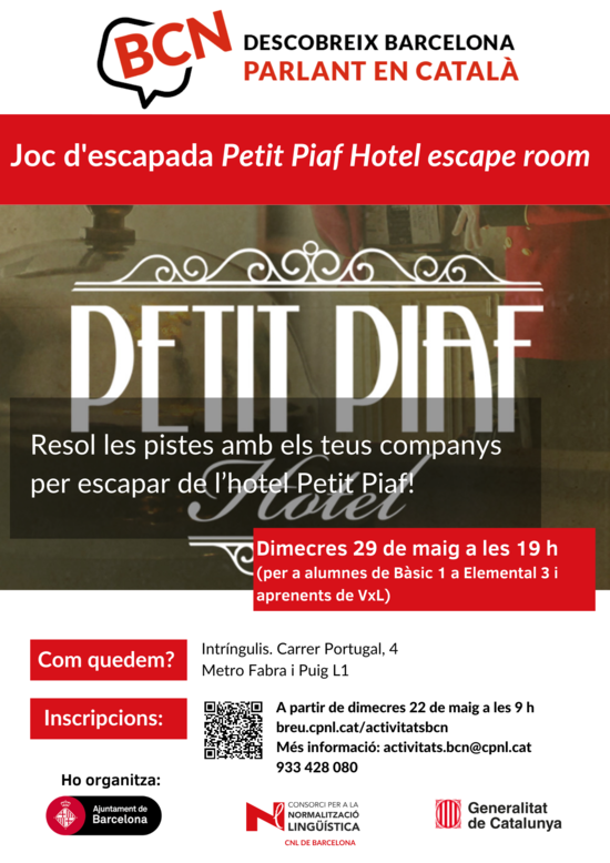 Per a qualsevol dubte, podeu escriure un missatge a activitats.bcn(ELIMINAR)@cpnl.cat o trucar al 933 428 080.