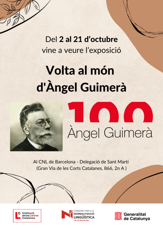 Del 2 al 21 d’octubre es podrà visitar l’exposició “Volta al món d’Àngel Guimerà”, a la Delegació de Sant Martí del CNL de Barcelona.