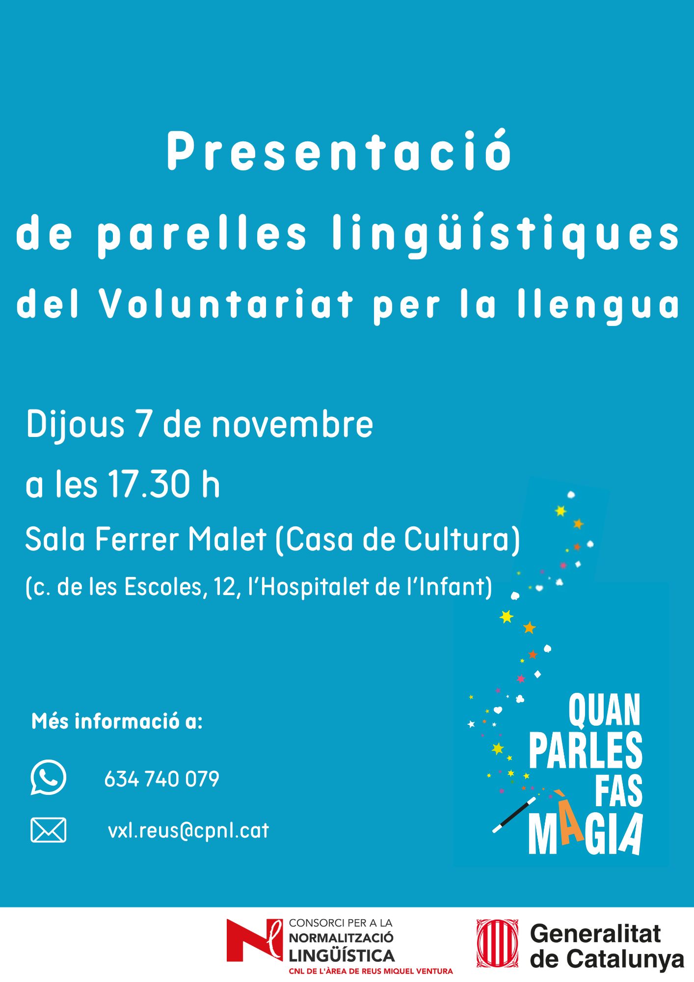 Aquest dia es coneixeran les parelles lingüístiques participants en la nova edició del Voluntariat per la llengua i rebran indicacions pràctiques per al bon funcionament de les trobades.