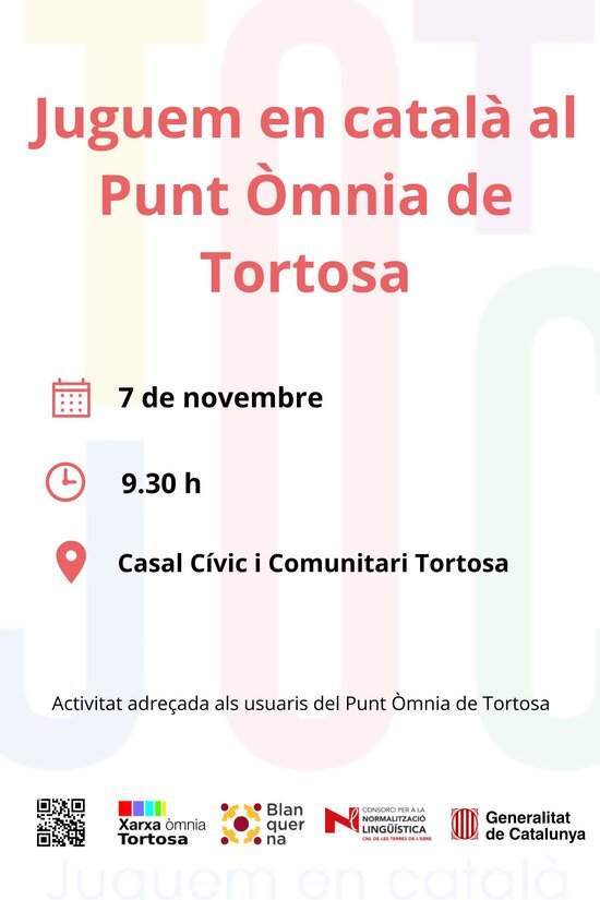 El dijous 7 de novembre, a les 9.30 h, hi haurà una sessió de jocs en català adreçada als usuaris del Punt Òmnia de Tortosa.