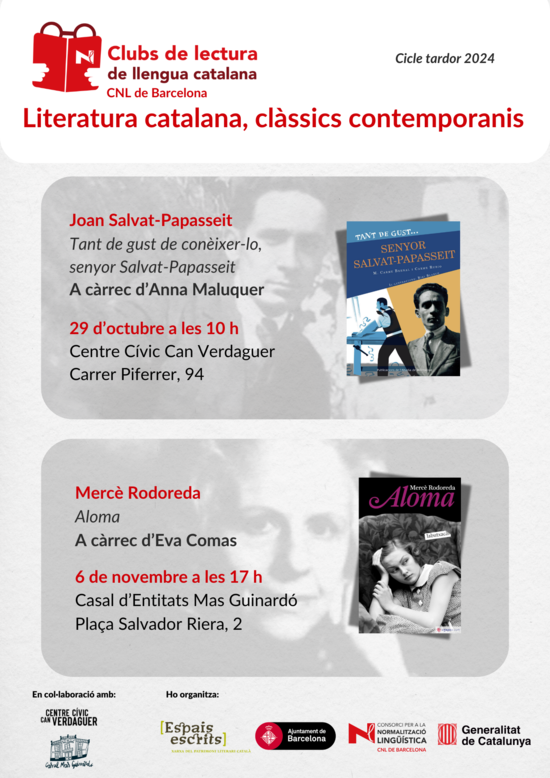 Club de lectura de llengua catalana sobre Joan Salvat-Papasseit, a partir de la lectura de Tant de gust de conèixer-lo, senyor Salvat-Papasseit, de M. Carme Bernal i Carme Rubió. El club serà conduït per l’experta en l’autor, Anna Maluquer.