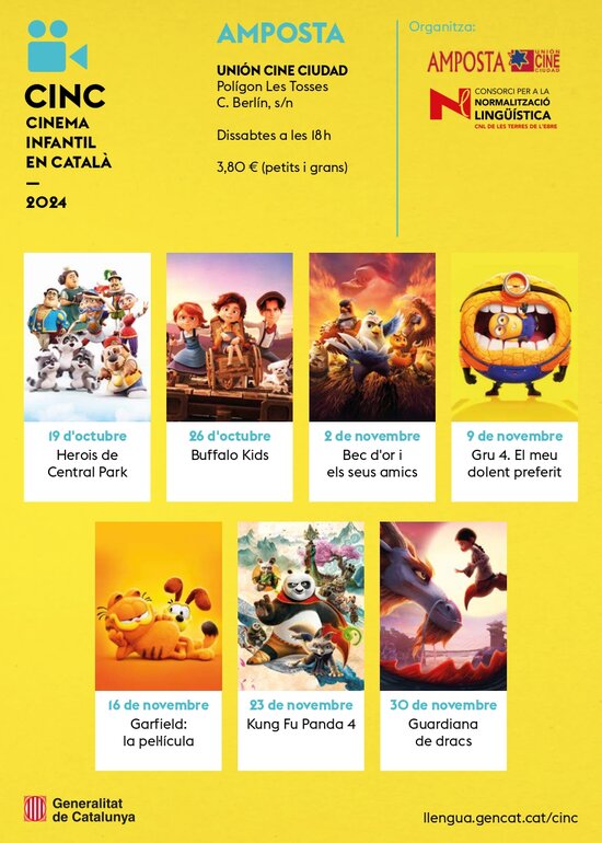 El dia 2 de novembre es projecta la pel·lícula Bec d’or i els seus amics. Es projectaran set pel·lícules infantils, doblades al català, a les sales del cinema d’Amposta que formen part del Cicle de Cinema Infantil en Català.
