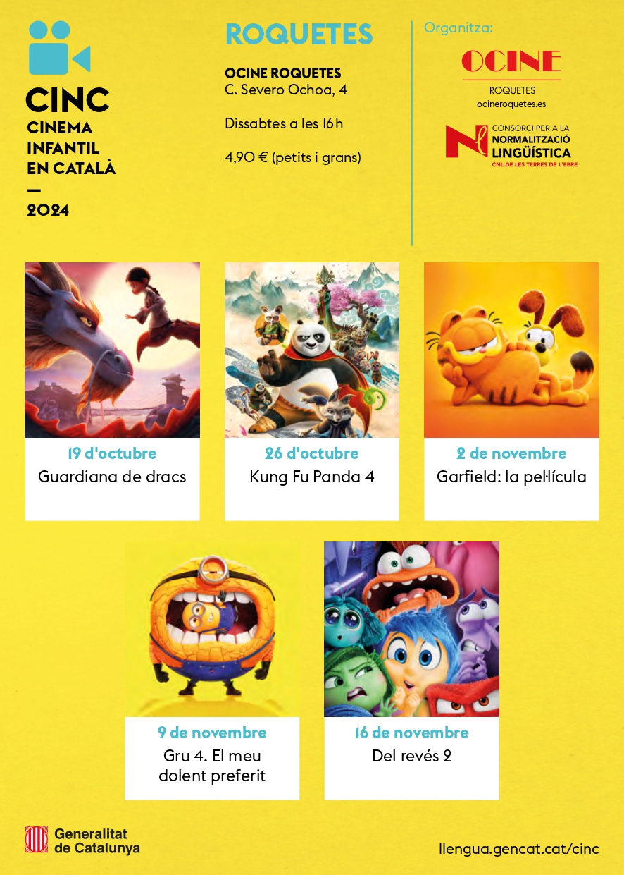 El dia 19 d’octubre es projecta la pel·lícula Guardiana de dracs. Es projectaran cinc pel·lícules infantils, doblades al català, a les sales del cinema de Roquetes que formen part del Cicle de Cinema Infantil en Català.