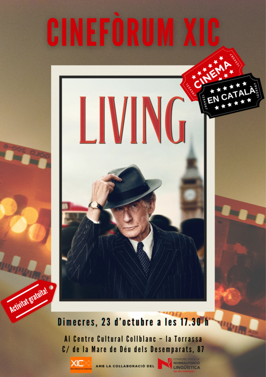 El dimecres 23 d’octubre, nova sessió del Cinefòrum XIC. Es tracta d’una activitat organitzada per la Xarxa d'Intercanvi de Coneixements (XIC) en col·laboració amb el CNL de l'Hospitalet. En aquesta ocasió la pel·lícula que es projectarà serà Living.