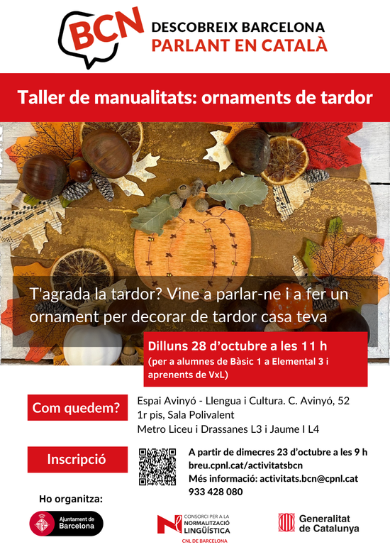 Per a qualsevol dubte, podeu escriure un missatge a activitats.bcn(ELIMINAR)@cpnl.cat o trucar al 933 428 080.
