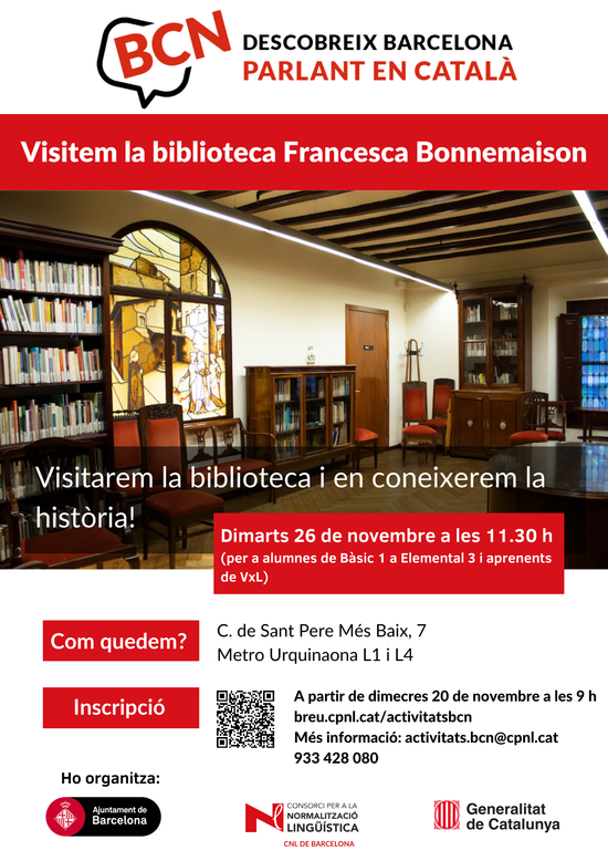 Per a qualsevol dubte, podeu escriure un missatge a activitats.bcn(ELIMINAR)@cpnl.cat o trucar al 933 428 080.