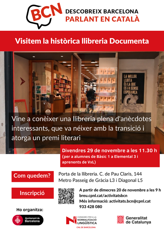 Per a qualsevol dubte, podeu escriure un missatge a activitats.bcn(ELIMINAR)@cpnl.cat o trucar al 933 428 080.