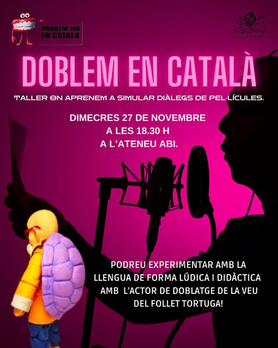 El dimecres 27 de novembre a les 18.30 h, tindrà lloc un taller de doblatge en català organitzat per l’ABI-Ateneu Domingo Fins de Montcada.