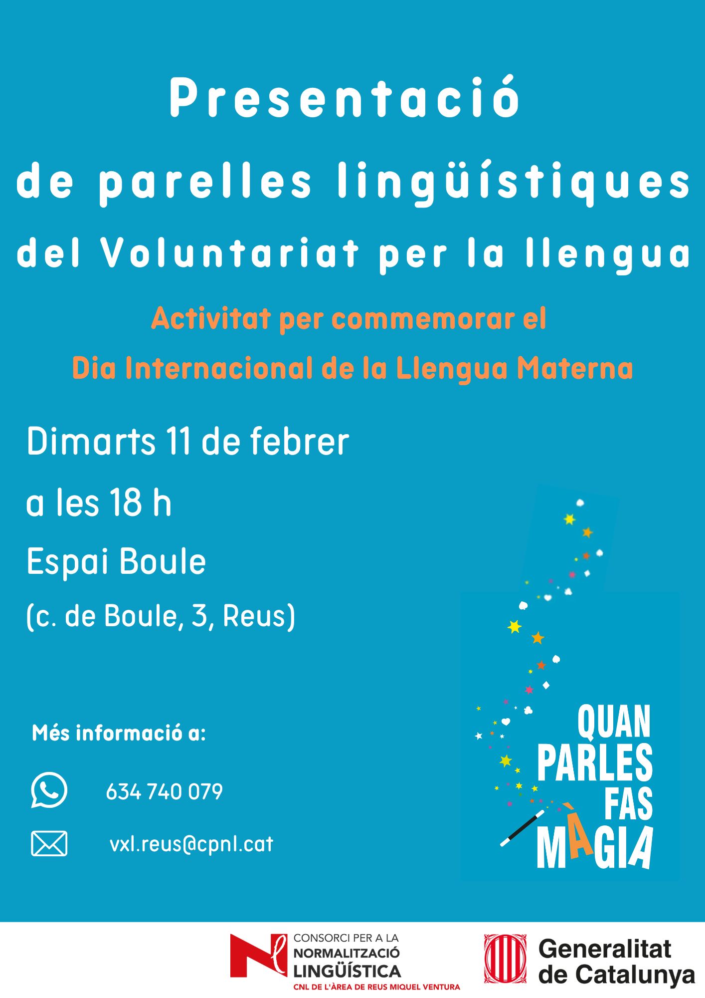 Aquest dia es coneixeran les parelles lingüístiques participants en la nova edició del Voluntariat per la llengua i rebran indicacions pràctiques per al bon funcionament de les trobades.
