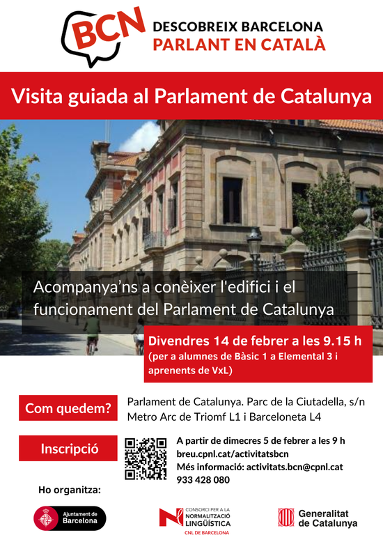 Per a qualsevol dubte, podeu escriure un missatge a activitats.bcn(ELIMINAR)@cpnl.cat o trucar al 933 428 080.