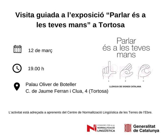 El dia 12 de març, a les 19.00 h, hi ha organitzada una visita guiada a l'exposició "Parlar és a les teves mans" que es troba ubicada, del 10 de febrer al 21 de març, al Palau Oliver de Boteller de Tortosa.