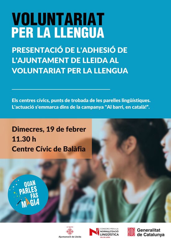 Presentació de l'adhesió de l'Ajuntament de Lleida al VxL: els centres cívics, punt de trobada de les parelles lingüístiques. L'actuació s'emmarca dins la campanya "Al barri, en català!"