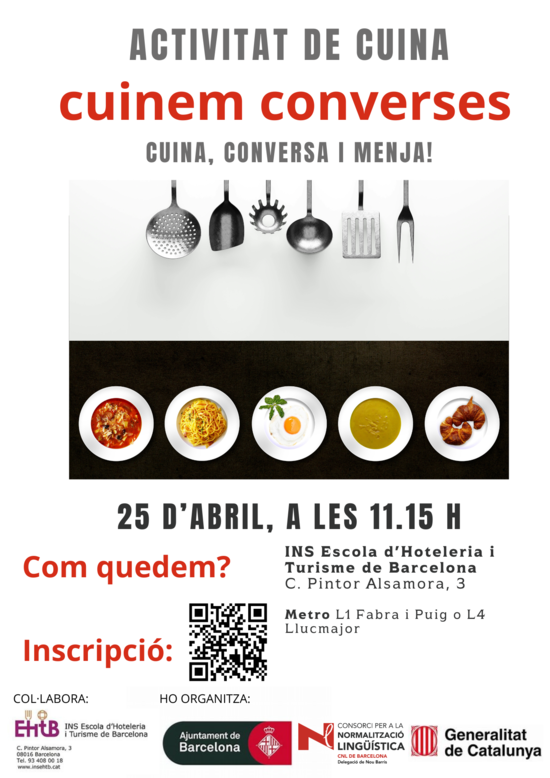 Cuina, conversa i menja! Us proposem aquesta activitat de cuina en la qual es faran una receptes de cuina conjuntament per després fer-ne la degustació.