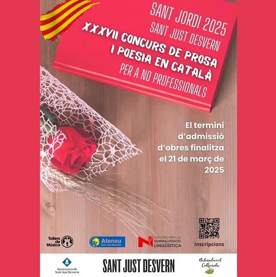 El lliurament de premis del concurs de prosa i poesia en català per a no professionals tindrà lloc durant els actes de la celebració de Sant Jordi 2025 a Sant Just Desvern.