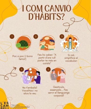 Taller presencial intensiu que té com a objectiu empoderar-nos per parlar català amb tothom i a tot arreu de la manera més fàcil possible, tot trencant gradualment els hàbits i prejudicis que sovint ens ho impedeixen.