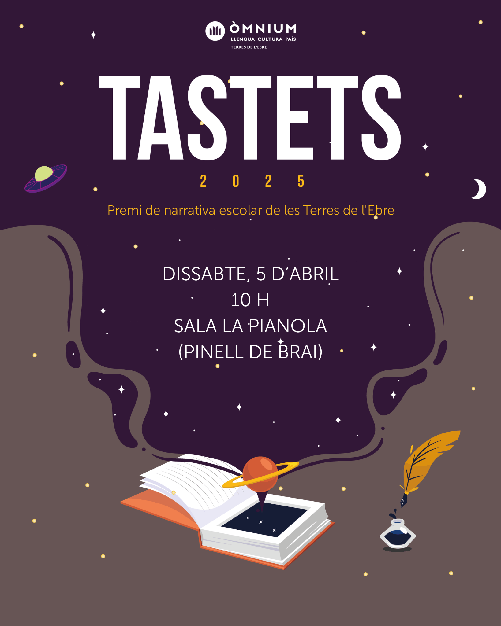 El dissabte 5 d'abril, a les 10.00 h, a la sala la Pianola de Pinell de Brai, s'entregaran els Premis Tastets i Especials 2025. El certamen de narrativa escolar i que enguany compta amb 125 obres participants en les categories de primària, secundària, batxillerat i educació especial.