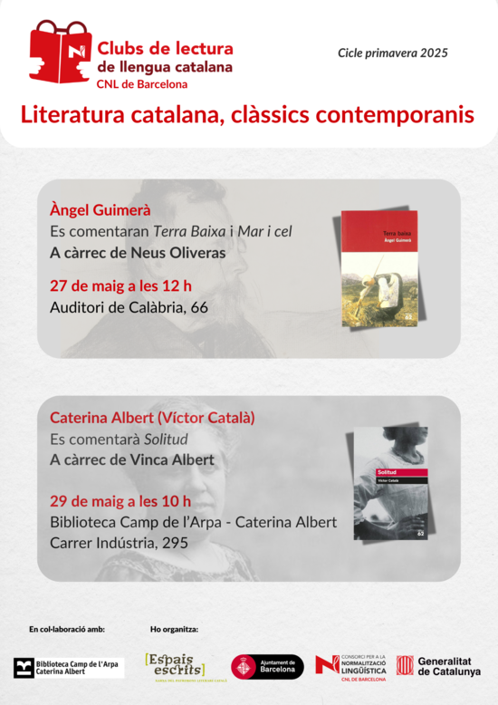 Sessió dedicada a Caterina Albert (Víctor Català), a la Biblioteca Camp de l’Arpa – Caterina Albert. Al club, organitzat conjuntament amb Espais Escrits, hi participarà l’experta Núria Bazaga, que comentarà l’obra Solitud.