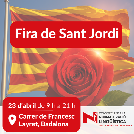 Cerca la paradeta del Centre de Normalització Lingüística a la Fira de Sant Jordi i informa't de tots els serveis que pots aprofitar. Tant si no parles català com si ja en saps i vols millorar-lo, el CNL et posarà a disposició el recurs més adient.