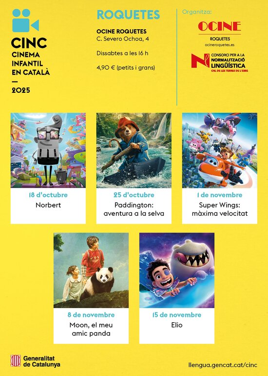 Cicle de Cinema Infantil en Català. Es projectaran cinc pel·lícules infantils, doblades al català, a les sales del cinema de Roquetes.