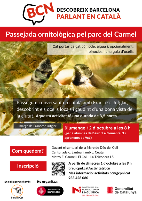 Per a qualsevol dubte, podeu escriure un missatge a activitats.bcn(ELIMINAR)@cpnl.cat o trucar al 933 428 080.