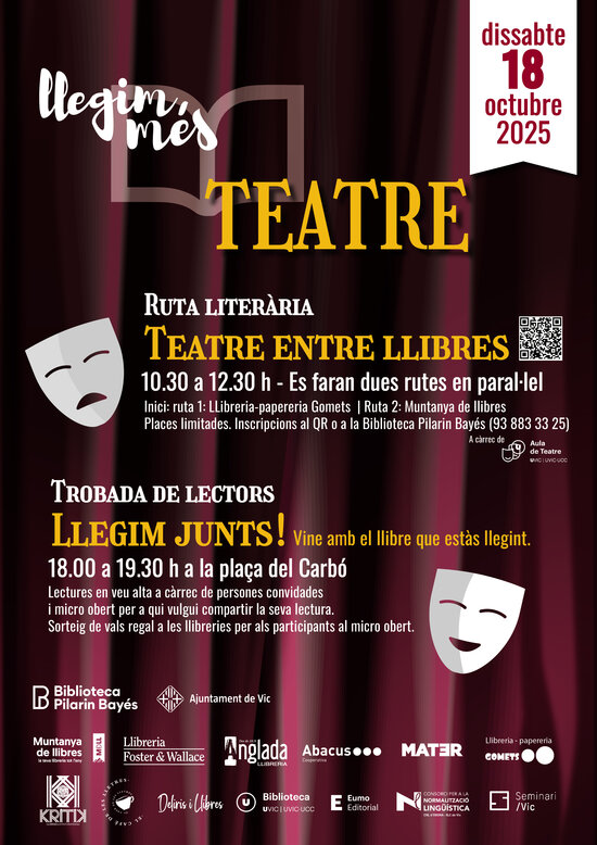 El programa Llegim més neix del treball conjunt de les entitats públiques i privades de Vic que formen part de l'Àmbit Lectura: biblioteques, llibreries, el Seminari de Vic i el Servei de Català de Vic. L’objectiu d’aquesta programació anual és fomentar la lectura a la ciutat de Vic. Enguany el gènere literari que s’ha triat és el teatre.