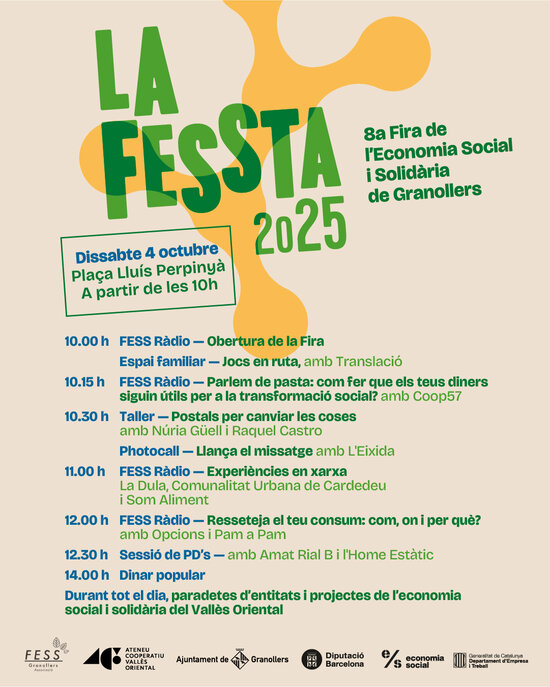 La 8a Fira d'Economia Social i Solidària de Granollers arriba carregada d'activitats. Un dia dedicat a descobrir projectes, passar una bona estona i posar un granet de sorra per començar a canviar les coses. Una jornada amb activitats al carrer, amb paradetes d'entitats locals, tallers divertits, xerrades, ràdio, música i festa. A més, podreu provar sort amb la ruleta de preguntes i endur-vos un petit obsequi!