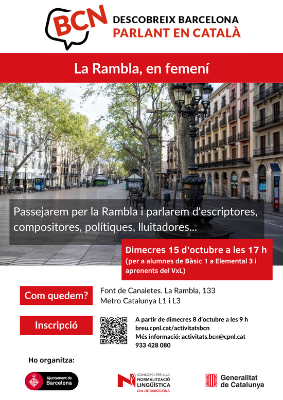 Per a qualsevol dubte, podeu escriure un missatge a activitats.bcn(ELIMINAR)@cpnl.cat o trucar al 933 428 080.