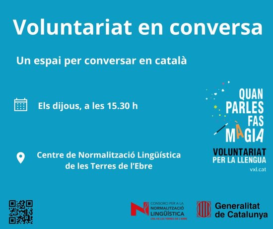 Els dijous, a les 15.30 h, té lloc l’activitat Voluntariat en conversa, al Centre de Normalització Lingüística de les Terres de l'Ebre. Un espai per conversar en català.