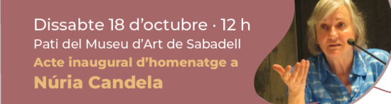 Rosa Renom i Carme Sansa, acompanyats pel músic Eduard Iniesta, retran homenatge a la rapsoda sabadellenca Núria Candela. Acte organitzat per l'Ajuntament de Sabadell i l'Arteneu, entitat col·laboradora del Voluntariat per la llengua del CNL de Sabadell.