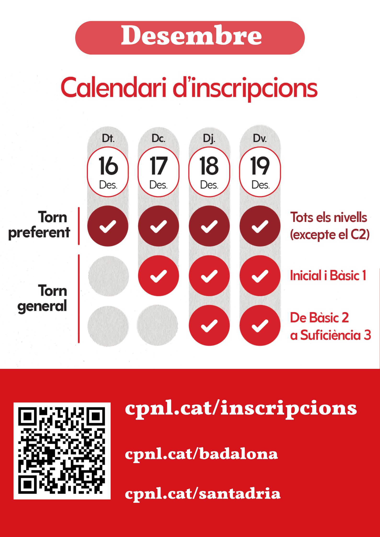 L'horari d'atenció al públic del CNL de Badalona i Sant Adrià durant els dies d'inscripció serà el següent: