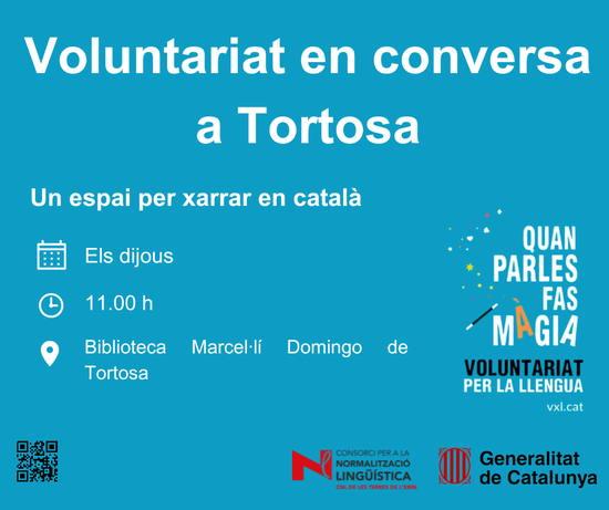 Els dijous, a les 11.00 h, té lloc l’activitat Voluntariat en conversa, a la Biblioteca Marcel·lí Domingo de Tortosa. Un espai per conversar en català.