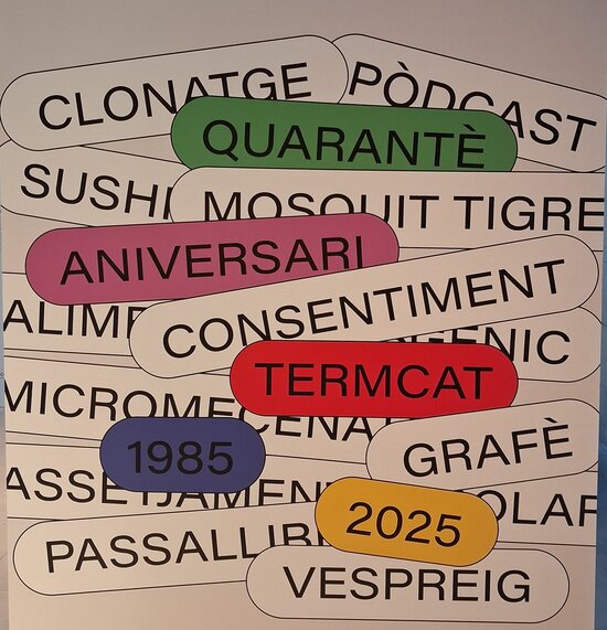 El TERMCAT va ser creat l'any 1985 per la Generalitat de Catalunya i l'Institut d'Estudis Catalans amb la missió d'impulsar l'ús de la terminologia catalana, actualitzant-la i adaptant-la als canvis socials. L’exposició presenta quaranta termes -un per any- que reflecteixen aquesta feina d’innovació i actualització lingüística.
