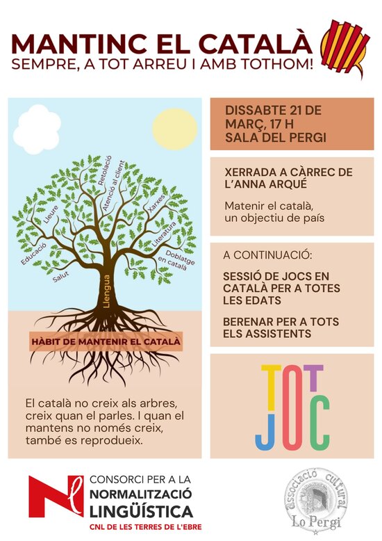 El dia 21 de març, a les 18.30 h, hi haurà una sessió de jocs en català a Miravet. Prèviament, a les 17.00 h, tindrà lloc la xerrada “Mantinc el català”. L'Associació Cultural Lo Pergi és l'encarregada de l'organització.