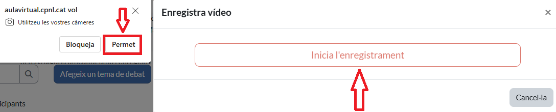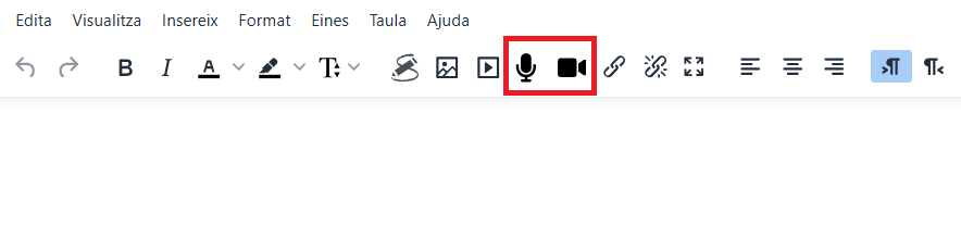 A dins de l'activitat, prem la icona de micròfon o càmera que trobaràs a la barra d'eines de l'editor. Si s'obre un avís per permetre l'ús del micròfon o la càmera, accepta'l.