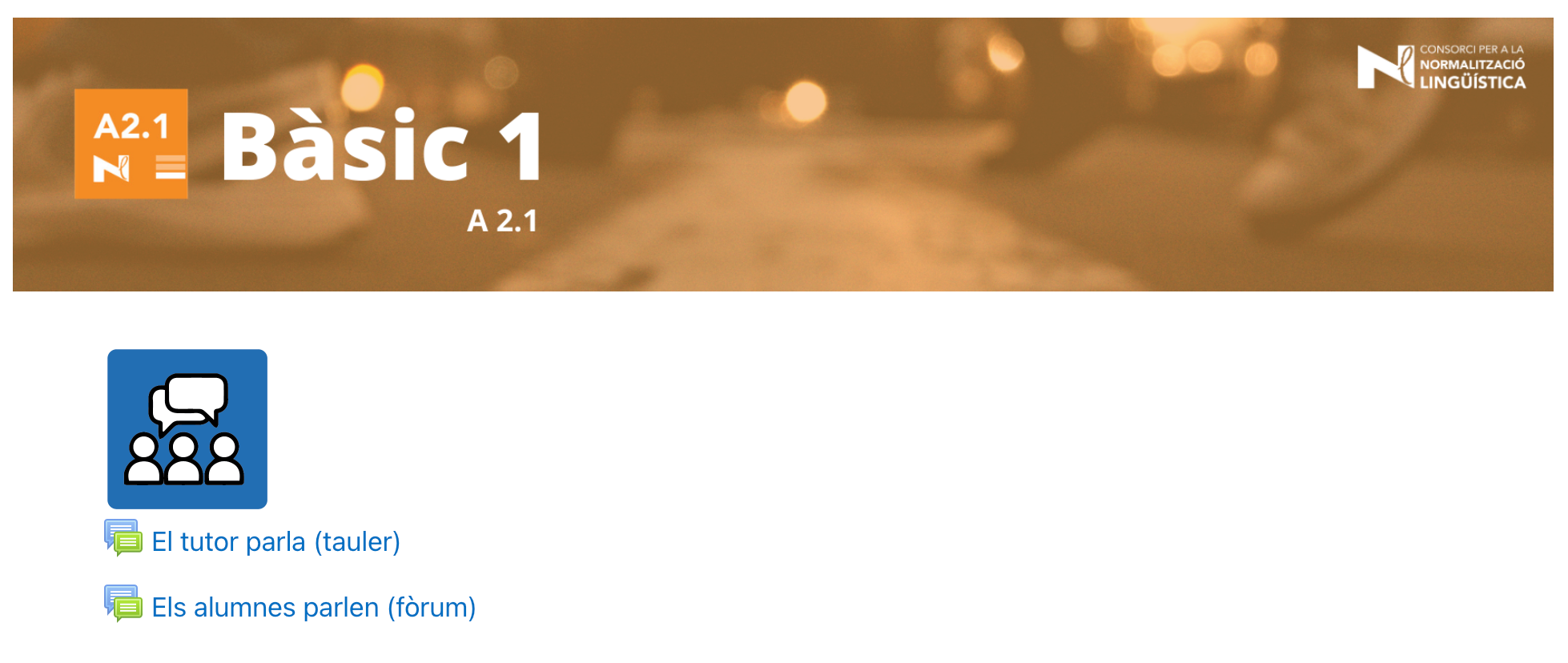 Si haces el nivel Bàsic 1, desde el espacio El tutor parla (tauler) (El tutor habla), el profesor te informará de todo lo necesario para el seguimiento del curso. En el espacio Els alumnes parlen (fòrum) (Los alumnos hablan) podrás enviar mensajes al tutor y al resto de alumnos.