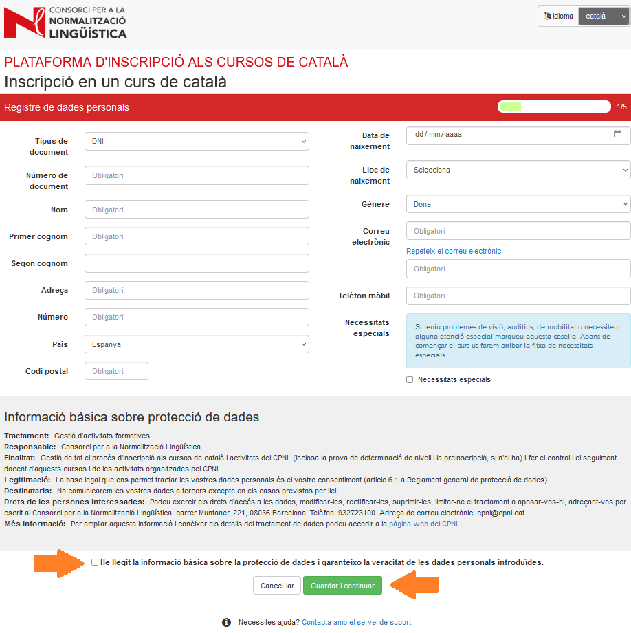 Entra en la plataforma de inscripción a los cursos de catalán, ve a Inscribirse en un curso y haz clic en Acceder.