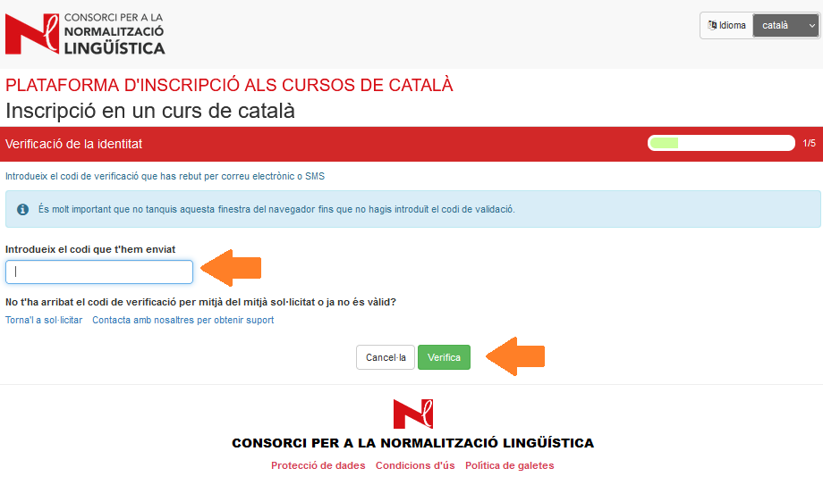 Recibirás el código de trámite en la dirección de correo electrónico o número de teléfono que hayas indicado en el momento de iniciar la gestión. Si el número de teléfono o el correo electrónico que aparecen en pantalla no son correctos, ponte en contacto con el servicio de atención al usuario.