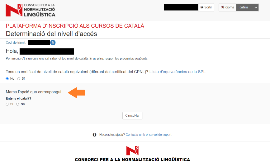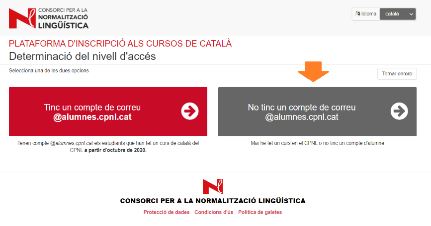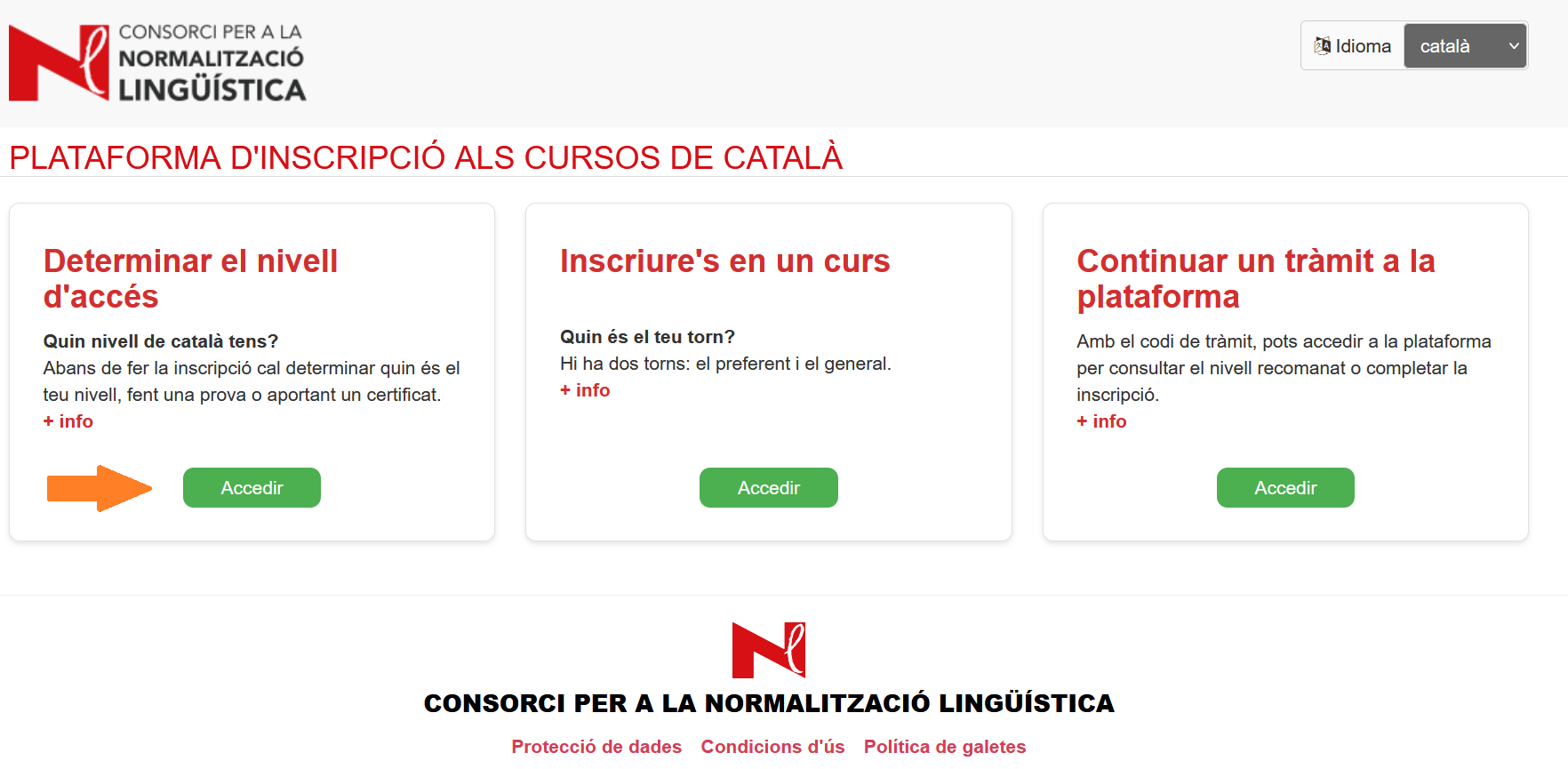 Entra en la plataforma de inscripción a los cursos de catalán y accede a "Determinar el nivel de acceso".